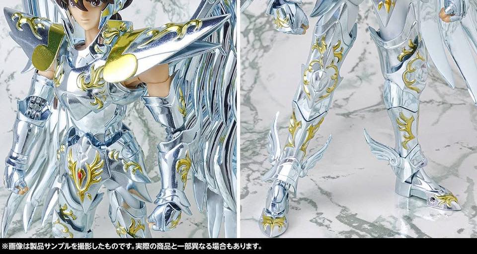 Ce produit de collection est fabriqué par Bandai Tamashii Nations dans sa gamme Myth Cloth EX. Il s’agit d’une version Metal qui dispose de coudes et genoux en métal peint afin d’assurer une continuité parfaite de l’armure au niveau des articulations.