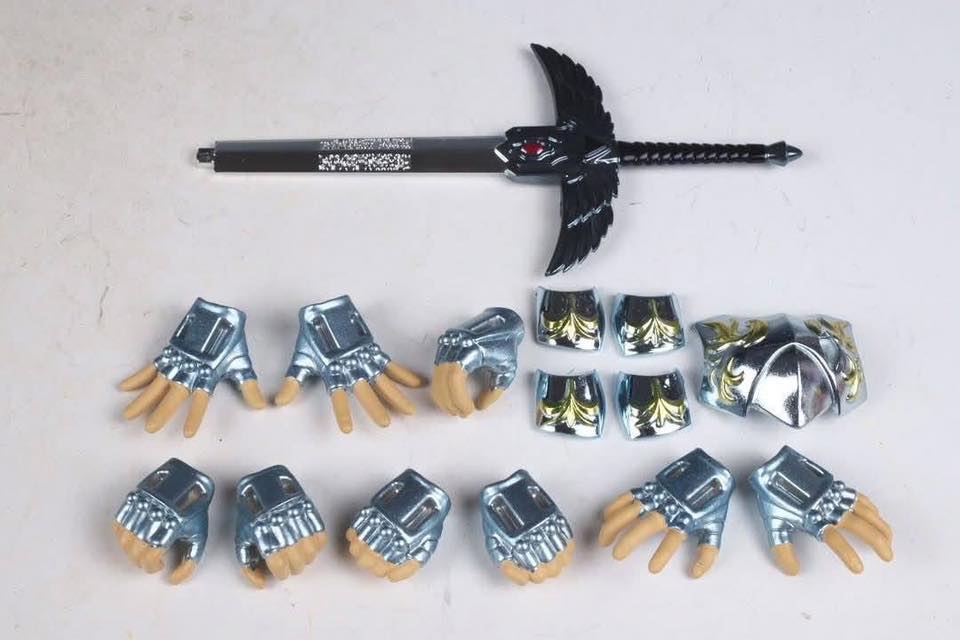 Tous les accessoires nécessaires à la présentation de l’armure sous sa forme de socle totem sont inclus ainsi que 4 paires de mains interchangeables. Une pièce de torse endommagée complémentaire pour l’armure est fournie afin d’y insérer l’épée de la figurine Myth Cloth EX de Hades (vendue séparément).