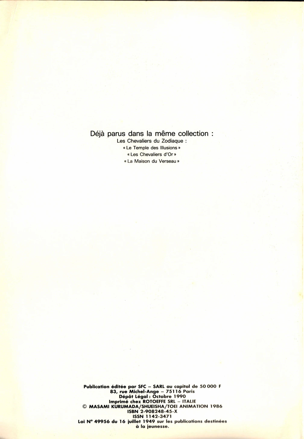 - Anime Comics – Album BD SFC 4 – Shiryû face à Masque de Mort